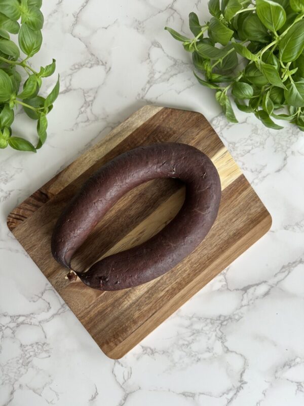 Weniger ist oft mehr. Das wußten schon Generationen vor uns. Keine Hausschlachtung ohne Blutwurst. Hocharomatischer Majoran spielt die Hauptrolle, etwas Nelkenpfeffer unterstützt ihn dabei. Tradition kann so genussvoll sein!