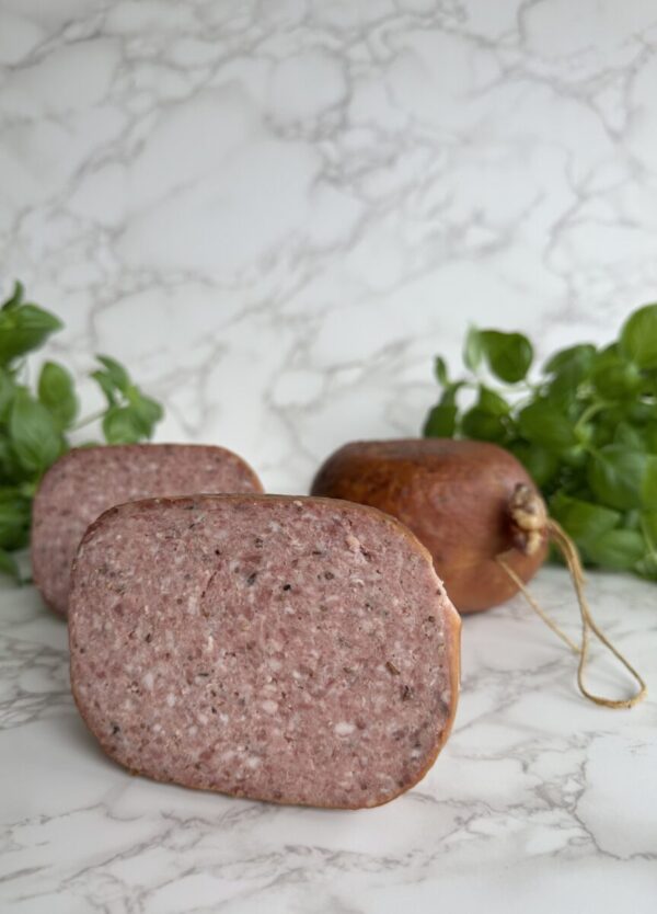 Echte Rhön-Fans kennen ihn schon, den Schwartenmagen. Er durfte bei keinem Schlachtfest fehlen. Bei uns schön mit Kümmel verfeinert und in der Blase aus Naturdarm, goldbraun geräuchert.